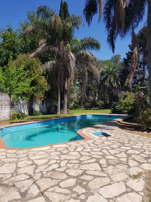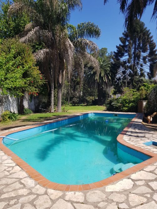 Gran fondo libre con cuarto de enceres, quincho con parilla y baño completo con ducha. Pileta de natacion de 4 x 12 m. con bomba funcional y filtro.
