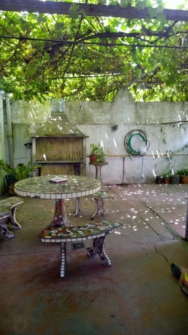 Casa con dos dormitorios , cocina comedor equipada con muebles bajo y sobre mesada , living comedor , baño reciclado , galeria con parrilla , lavadero y patio. Rejas al frente y jardin .Galpon o taller con techo de chapas con salida a la calle King . T/S. A 1 cuadra de Av. San Martin . 5 de las estacion de R.Calzada y a 7 de J.Marmol.