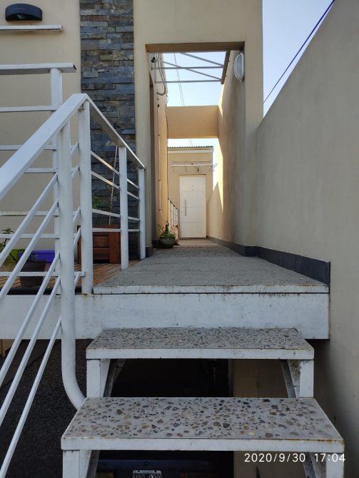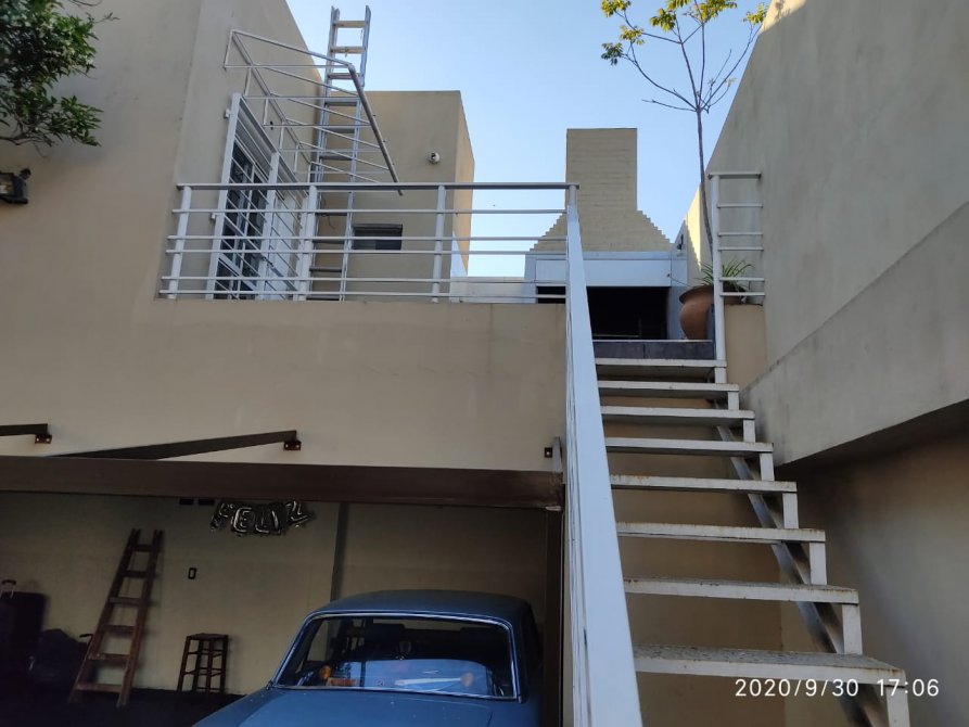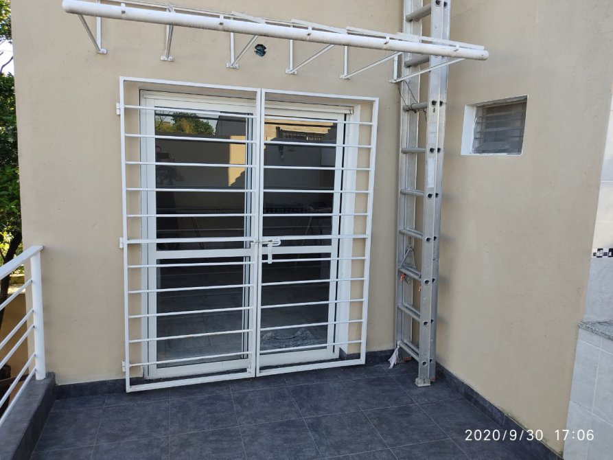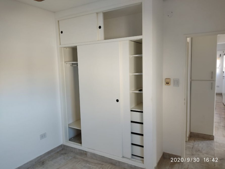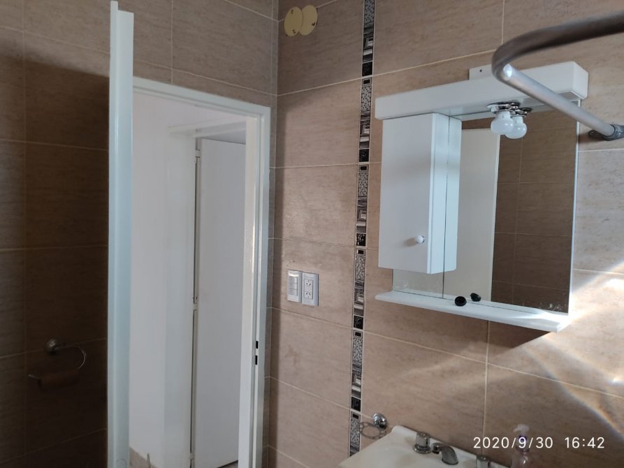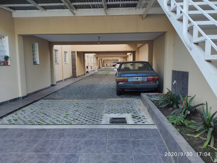 Hermoso departamento en planta alta, con frente a la plaza, muy luminoso.Porton corredizo automatizado. Acceso peatonal: dos puertas. consta de amplio living comedor con balcon-terraza, cocina con mobiliario completo, baño completo con espacio destinado para lavarropas, 2 dormitorios (1 con placard con interior); en P.B: cochera propiay espacio comun semicubierto con baño. Planta alta SUM con baño.y terraza con parilla. Sin expensas. Todos los servicios. Retasado.