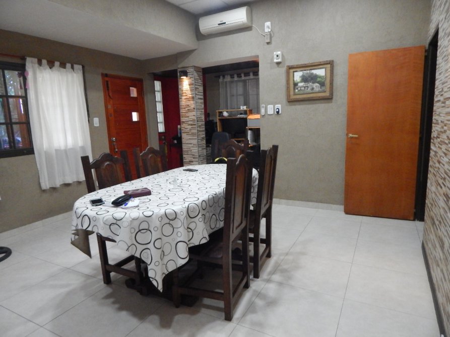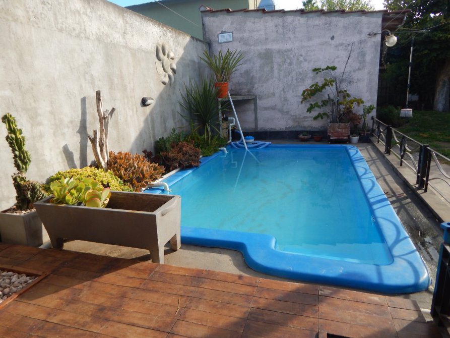 Hermosa casa reciclada a nuevo, sobre amplio lote de 8,66 x 38 aprox.Consta de: cochera cubierta al frente, amplio living comedor (pisos porcelanato) con pequeño y funcional espacio para escritorio, pasillo distribuidor, 3 dormitorios con placard ( 2 con pisos de ceramica y uno con parquet), baño completo con antebaño, ducha y vestidor, comedor diario conectado con cocina con imporante mobiliario alto y bajo mesada, lavadero incluido. Pequeña galeria semicubierta, fondo libre con pileta de fibra (totalmente equipada), segunda vivienda tipo departamento con cocina comedor, baño completo y dormitorio, parilla exterior, quincho con techo tejas, gran parilla con mesada completa. Estado general impecable. Todos los servicios. Escritura. Acepta permuta.